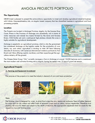 Angola has a good agricultural base and natural resources, suitable for crop growth, but because of the lack of agricultural development and utilization of new technology , Angola has been a long-term dependent on imports of agricultural products. To revitalize its own agriculture, the Angolan government strongly supports foreign funds to enter Angola for agricultural projects and gives substantial taxation and land preferential policies.